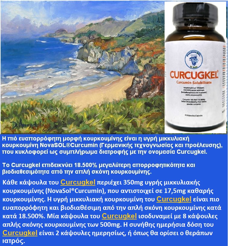 Η πιό ευαπορρόφητη μορφή κουρκουμίνης είναι η υγρή μικκυλιακή κουρκουμίνη NovaSOL®Curcumin (Γερμανικής τεχνογνωσίας και προέλευσης), που κυκλοφορεί ως συμπλήρωμα διατροφής με την ονομασία Curcugkel.